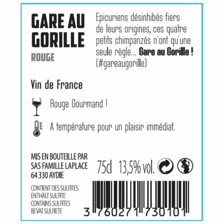 Sortie 🎁 Gare au gorille – Vin de France – Rouge – 75 cl 🎁