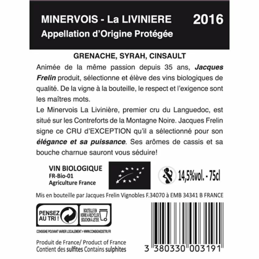 Sortie 🛒 Jacques Frelin La Livinière BIO, 2016 – Minervois AOP – Rouge – 75 cl 🎉