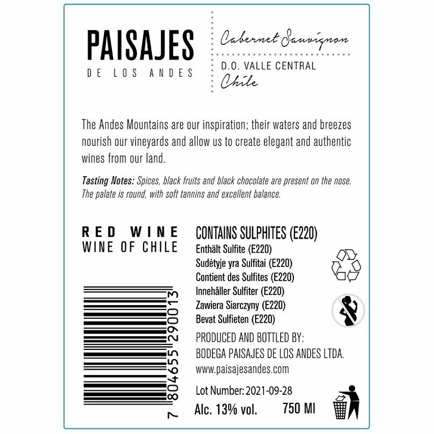 Meilleur prix 👏 Paisajes de los Andes, 2021 – Valle Central DO, CHILI – Rouge – 75 cl ✨